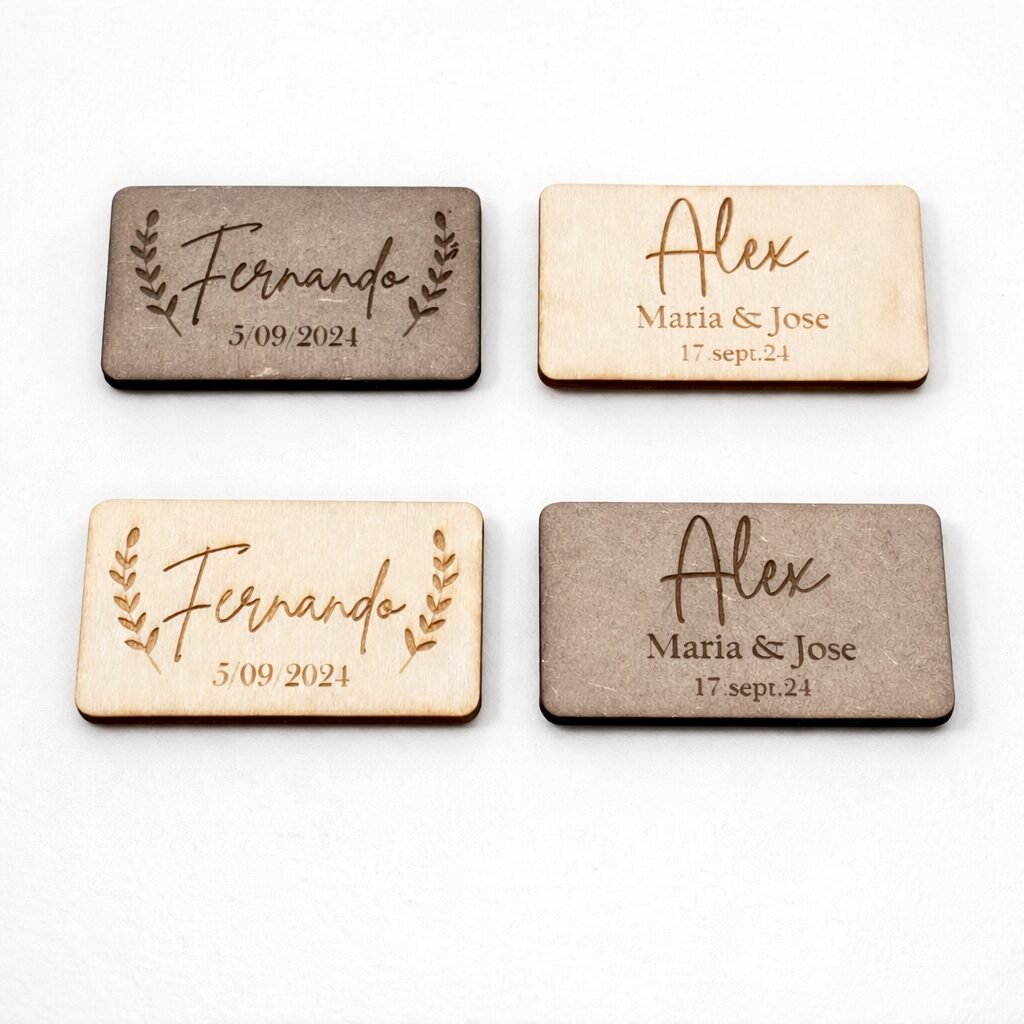 Estos marcasitios de madera personalizados son el detalle perfecto para organizar tus mesas con elegancia y un estilo natural. Cada pieza está grabada de forma individual, convirtiéndose en un recuerdo único para tus invitados.