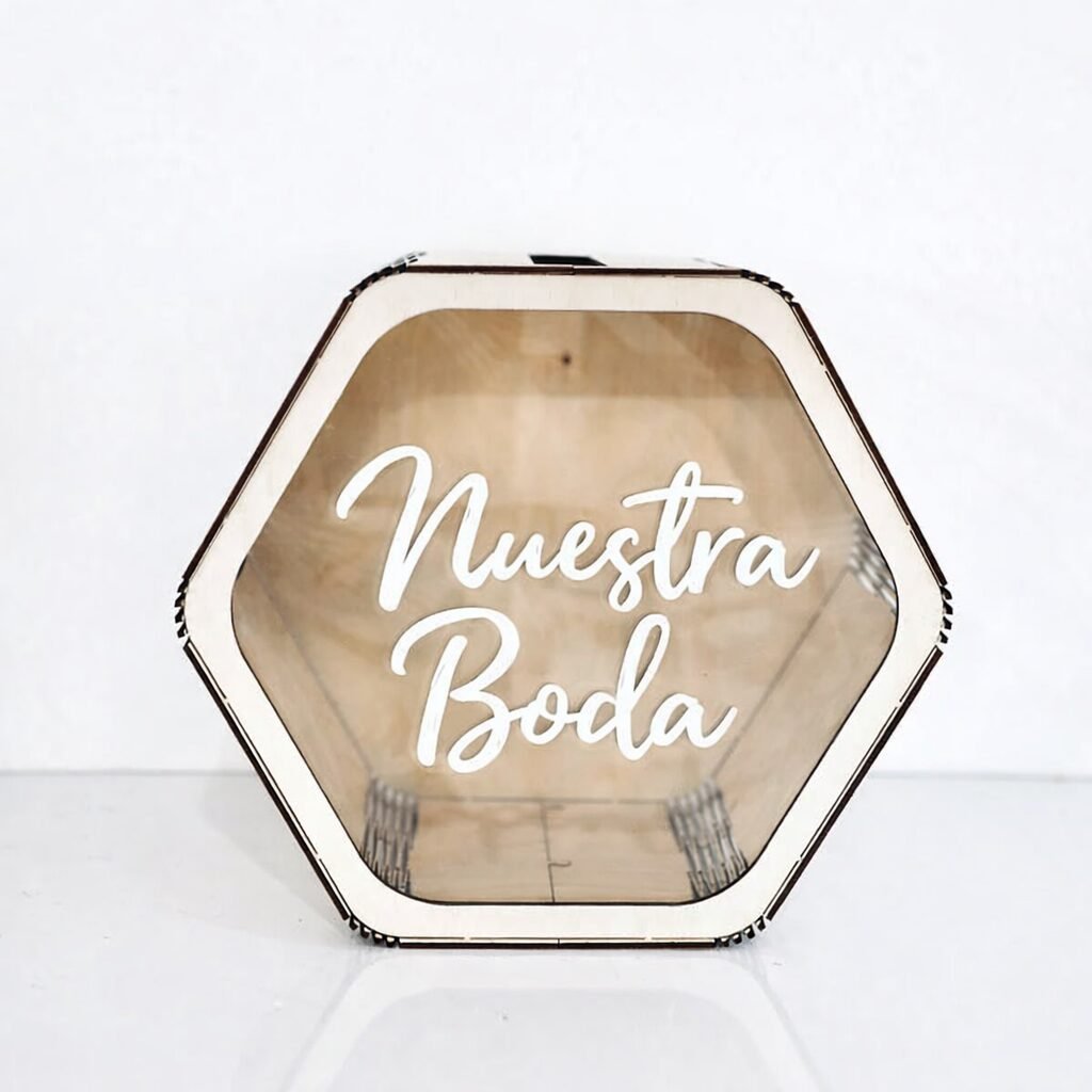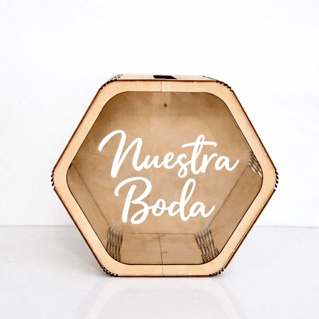 Urna de madera personalizable, ideal para guardar cartas, mensajes y dedicatorias en comuniones, bodas, bautizos, aniversarios y eventos especiales.